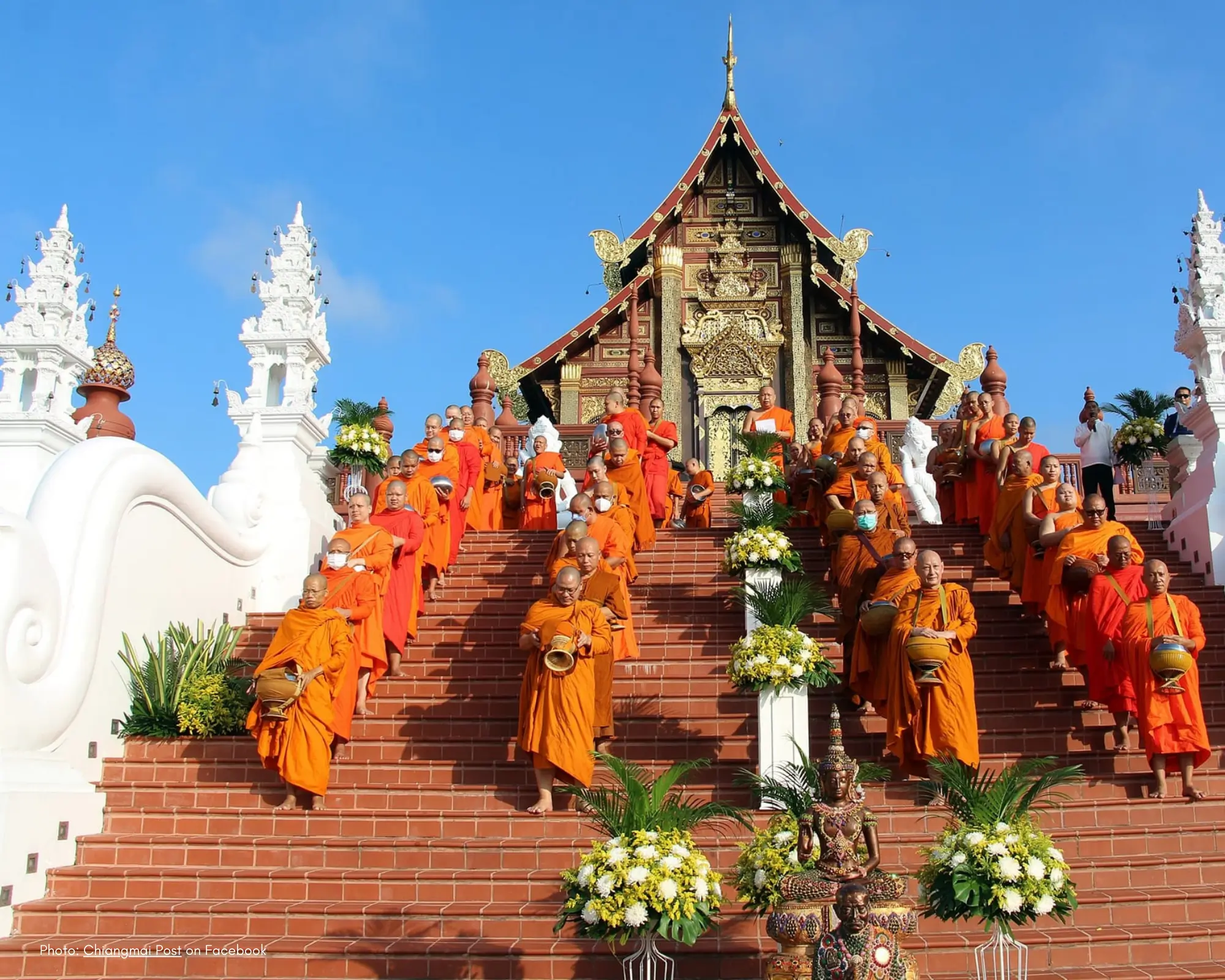 O Tak Bat Devo é celebrado geralmente em outubro e marca o fim do Retiro das Chuvas, período em que os monges permanecem nos templos dedicados ao estudo e à meditação.